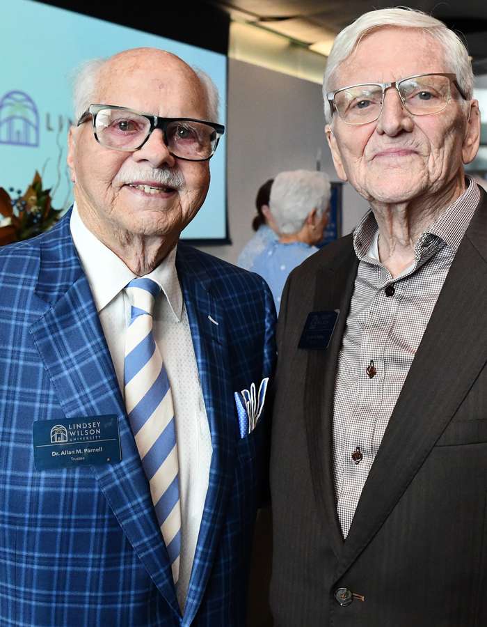 Pictured, bottom, right: Lindsey Wilson University trustee Dr. Allan M. Parnell, left, and former Lindsey Wilson College President John B. Begley were among those who attended the Lindsey Wilson University celebration on Tuesday, July 1, at the Speed Art Museum in Louisville, Kentucky. An Adair County native, Parnell was the longest-serving chairman of the Lindsey Wilson College Board of Trustees, and Begley was Lindsey Wilson's sixth president from 1977-97.