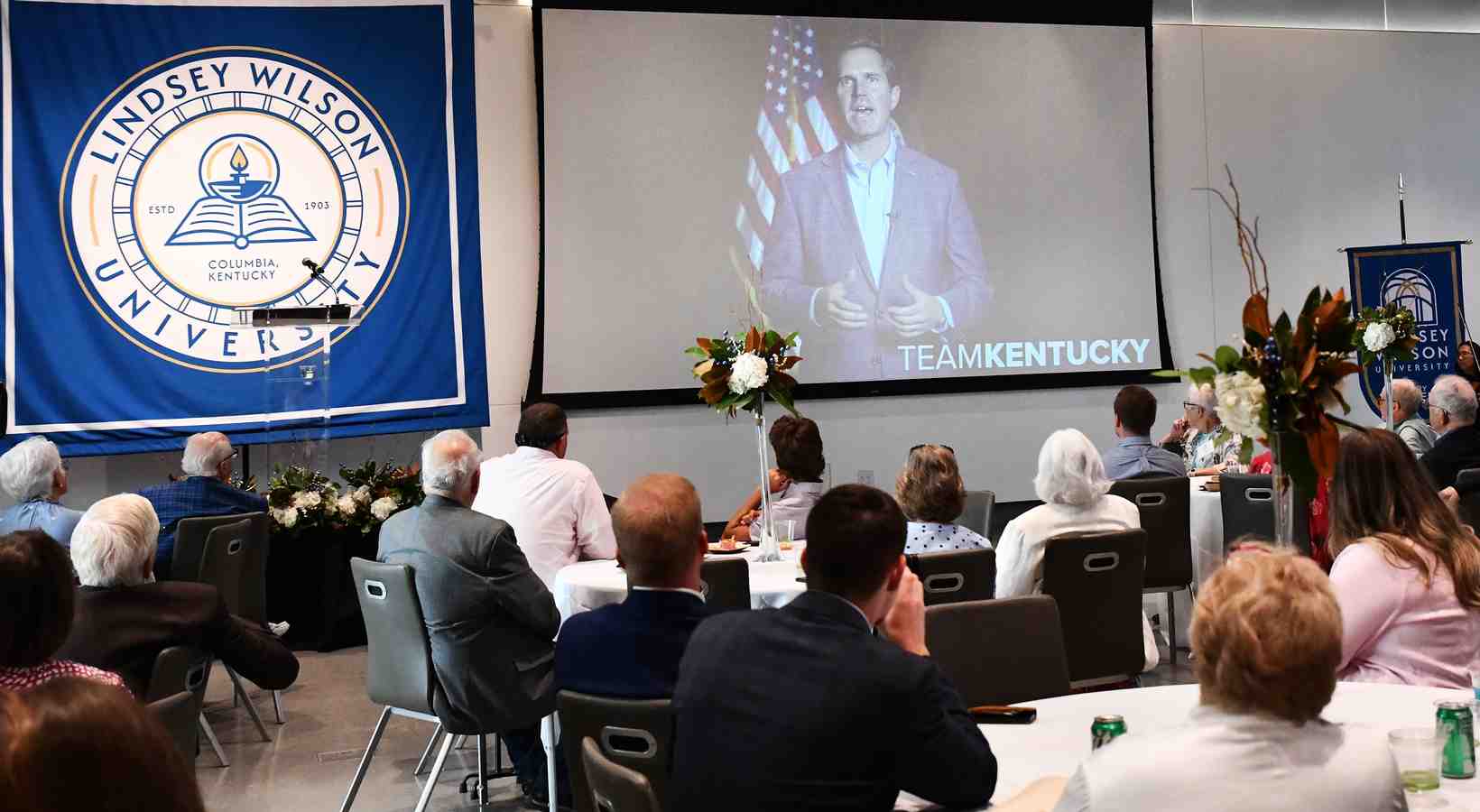 In a recorded video message to the audience, Kentucky Gov. Andy Beshear congratulated Lindsey Wilson on its "new level of success."